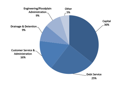 The pie chart below depicts the allocation of Utilities' Stormwater funds for the current budget.