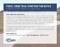 - Completion of the tunnel will allow the future connection of the Fossil Creek Trail from College Avenue to Shields Street. Connecting and completing the Fossil Creek Trail is the public’s number one priority in the City’s trail system.