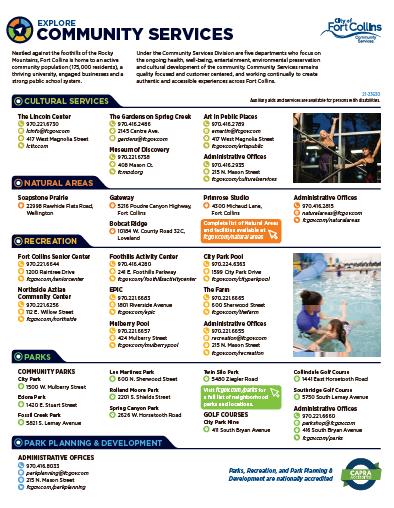 The amenities provided through Community Services in Fort Collins are part of what makes us one of the choice destinations to live, work, play, and retire.
